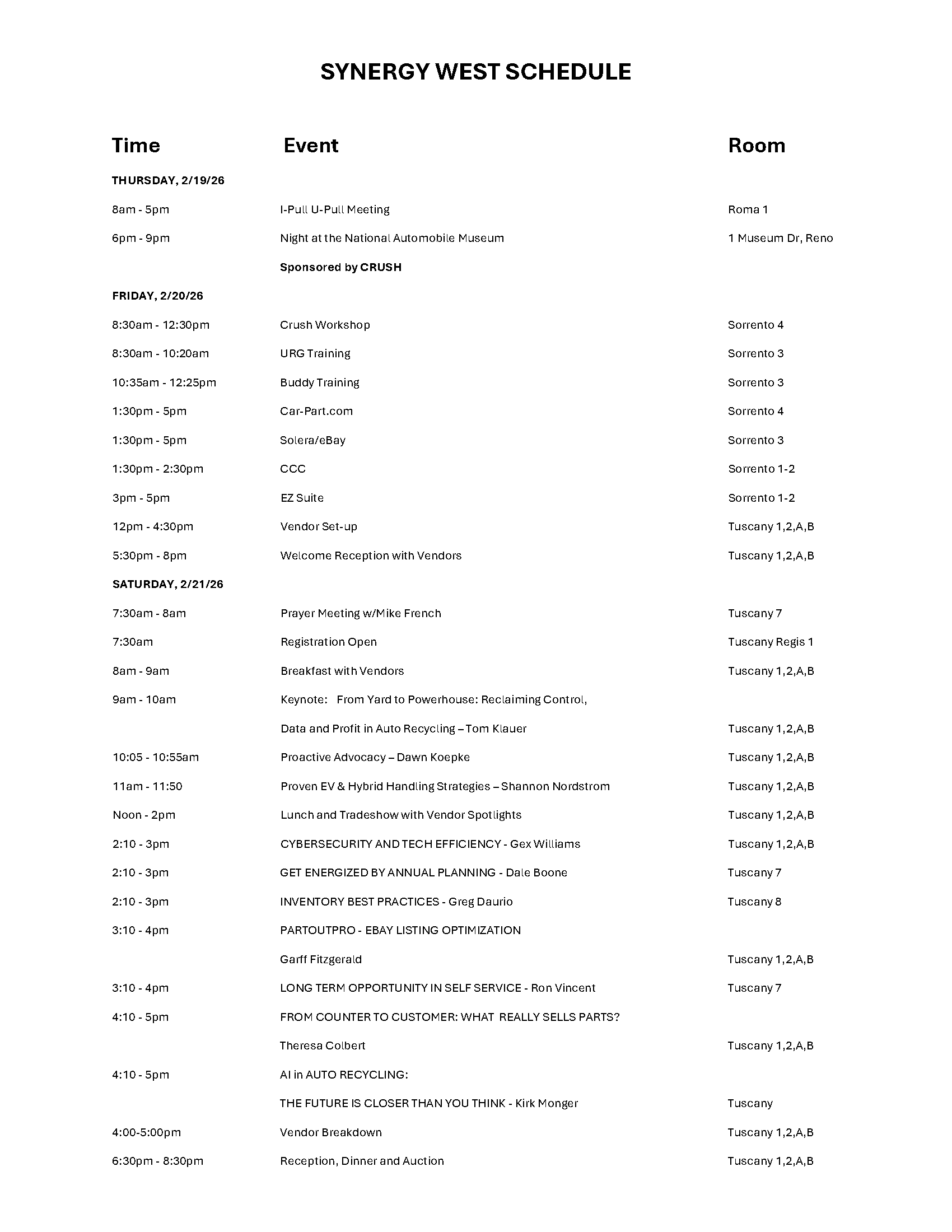 The Western Auto Recyclers Alliance is proud to present an all-new Education, Technology and Industry Showcase – a must-attend event for professionals ready to drive the future of the automotive recycling industry.